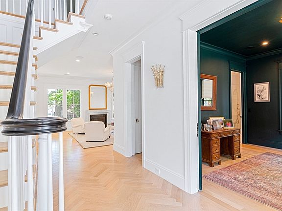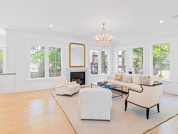 Don’t miss this rare opportunity to own a 2023 custom-built Modern Farmhouse in Newton Centre, where timeless design meets modern luxury. Sunlight pours through expansive windows, illuminating white oak floors and soaring 9' plus ceilings that create a warm, welcoming atmosphere. Open, airy rooms flow seamlessly from elegant living and dining areas to a designer kitchen that anchors the home in both style and function—perfect for relaxed family living or sophisticated entertaining. The private primary suite features a spacious walk-in closet and luxurious spa bath. Three additional bedrooms are upstairs, while a first-floor bedroom/office and lower-level guest suite offer versatility for today’s lifestyle. Smart home features, 5.5 spa-inspired baths, a finished walkout lower level, 50-ft wraparound porch, and a two-car garage with brick driveway complete this exceptional offering near houses of Worship, Newton Center, Newtonville & major routes. Mason Rice/Brown/Choice of High School.