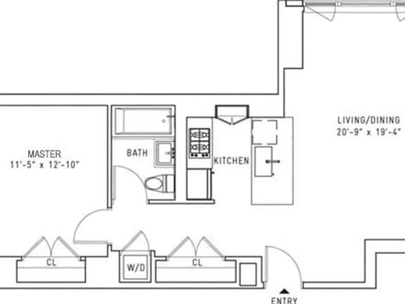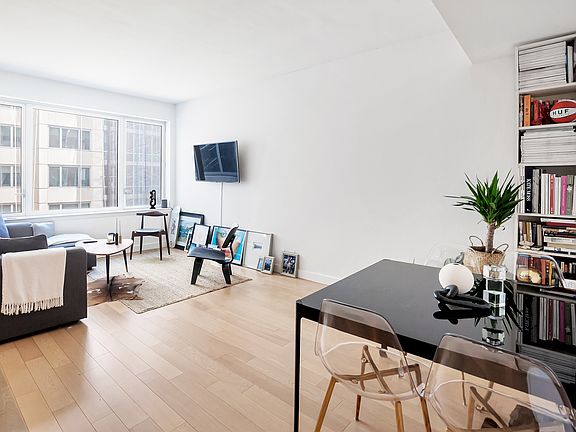 Welcome to Residence 4D. This oversized one-bedroom features a functional layout with a spacious living area, great natural light in the main room, and thoughtful details throughout. The home offers a quiet interior exposure, in-unit laundry, and generous storage, with a windowless bedroom set away from the main living space for added privacy.