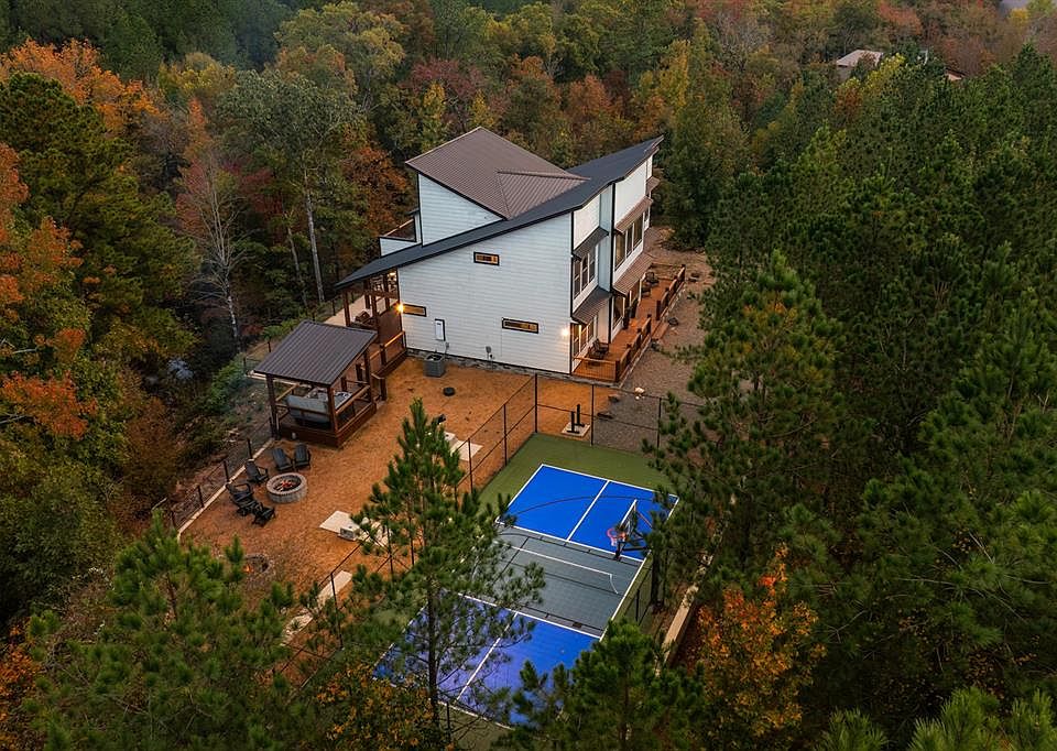 Welcome to Disconnect 2 Connect, a premier modern cabin designed for fun and togetherness in Broken Bow! This spacious retreat features 4 bedrooms (2 King, 2 Queen, ensuite full baths in all) plus a bunk/game area with 6 twins (with separate full bath) and 3 arcade games. Outdoor amenities are unmatched, boasting a private pickleball/basketball court, a gazebo-style hot tub, and two fire pits. The cabin has a modern kitchen, an indoor fireplace, and a convenient Tesla EV Charger. Located on paved roads near all local attractions.