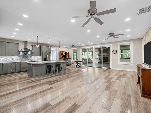 Experience privacy, space, and golf course living all in one place on Arrowhead Golf Course, just minutes from the interstate. A rare find, this property includes both a 2-car attached garage and a 2-car detached garage with electricity—perfect for a workshop, hobby space, or home business setup. This gorgeous custom-built one-owner home offers nearly 5,000 sq ft of beautifully designed space tucked at the end of a private cul-de-sac. The fully finished walkout basement comes complete with a kitchenette and is ideal for children, multigenerational living, or a mother-in-law suite, and also features a theatre room and abundant storage. The true chef’s kitchen includes a striking concrete island, quartz countertops, built-in oven and microwave, walk-in pantry, and excellent storage. The main-level primary suite offers a spa-like bath with double vanities and a soaking tub. Additional highlights include 9-ft ceilings, 8-ft Amish-made doors, a Florida room with gas fireplace, private decks, stamped concrete patio, a huge laundry room with sink and a tankless water heater.