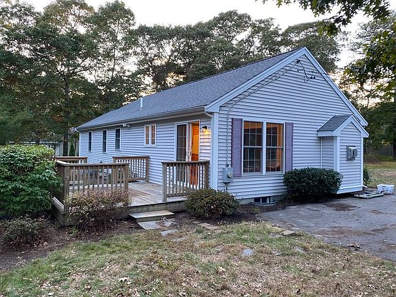 This Charming and Bright 3 bedroom, 2 bath Ranch in desirable location steps away from Great Herring Pond. This home is vacant and buyer ready! Spacious open floor plan with a beautiful living room with cathedral ceiling, gas fireplace and hardwood floors throughout. Open oak kitchen with island and ceiling fan in dining area is sunlight filled with direct access to back deck through the slider doors. Master bedroom features a master bath and large walk-closet. Second bath feature a linen closet and laundry hook ups behind 2 slider doors, 2 good sized bedrooms with wall to wall carpet and double closets. Full basement with bulkhead has potential for expansion. Great level lot with nice shed in back yard. Easy access to Route 3 Boston/Cape Cod.