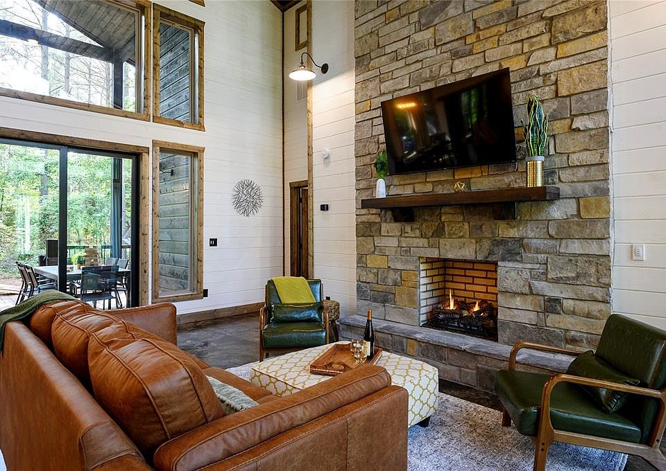 *REVENUE* earning cabin! Holy Guacamole is a rare one-level cabin with 3 king suites and a separate bunkroom/gameroom including a closet and its own private bathroom. The large open-concept floor plan provides stunning interior finishes throughout! Floor-to-Ceiling windows and forest views allow for a peaceful experience. Outdoors the family will enjoy time around the firepit with seating for 8 and a well lit area of string lights. The bump out hot tub area off of the extended patio gives nice privacy away from the rest of the deck. The full-length back deck is perfect for grilling and relaxing. Enjoy the open-concept living and dining area, accompanied by a breathtaking, fully stocked kitchen that overlooks the scenic back deck with views of pine trees ad the cozy fire pit. With seating for 14 at the the dining table and bar, there's room for everyone to dine! Let the natural beauty seep in through the foor-to-ceiling windows, truly the Perfect setting for quality time. Each king suit boasts a flat-screen TV and a private bathroom for ultimate comfort. The bunk room delights with triple-stacked bunks, a full-sized futon, and an exciting custom arcade with over 60 games. One of the most amazing features is the large floor to ceiling gas log fireplace. After a long day of activities, relish in the moments of sharing stories and making memories in the spacious living area while enjoying the evening glow of the fire and your favorite beverage. This cabin is located very near ATV riding trails. Priced to sell, let's schedule your showing today!