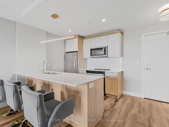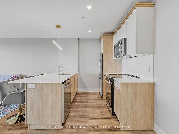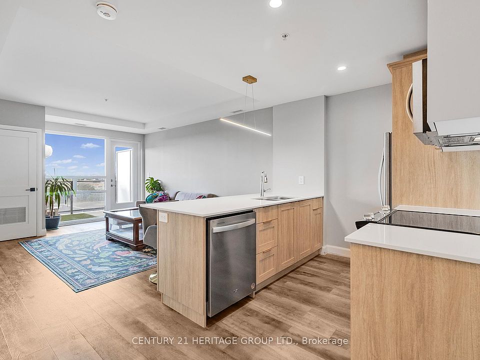 Welcome to this beautiful one-bedroom unit located on the sixth and top floor of the sought-after condo community The Landing in Brantford. This bright, modern suite combines style, comfort, and accessibility in a thoughtfully designed open-concept space. Featuring the upgraded 'Globe Trotter' package; this unit's kitchen has sleek shaker-style cabinetry, quality upgraded appliances, and tasteful finishes throughout. The spacious bathroom has an accessible layout, perfect for those using walkers or wheelchairs. Wide doorways throughout the unit further enhance ease of movement and add to the overall sense of space and luxury. Enjoy quiet mornings or relaxing evenings on your private balcony, with no upstairs neighbours and peaceful views from the top floor. Natural light radiates in, creating a warm and inviting atmosphere throughout. The Landing Condominiums offers a full range of amenities, including a rooftop terrace with panoramic views and BBQs, a cozy library for quiet afternoons, a hidden speakeasy-style lounge for entertaining, a kid's play area, and a modern fitness centre with premium equipment. Ideally located close to shops, restaurants, and essential services, with convenient access to major highways for easy commuting. Whether you're just starting out, downsizing, or investing, this is low-maintenance living in a welcoming community offering the perfect blend of luxury and practicality. Schedule your private showing today and experience life at The Landing. 1 Owned Parking & Locker