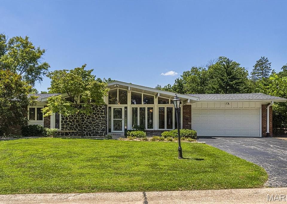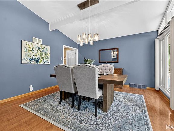 Open House on 8/2 from 1-3PM; 8/3 from 2-4PM. Welcome to your golf course retreat in the heart of Chesterfield! This mid-century modern ranch backs to the lush fairways of Four Seasons Golf Course, offering stunning views year-round. Vaulted ceilings and expansive windows & the open living areas w/ natural light, create an inviting space for entertaining & everyday living. The main floor features a huge sunroom addition you wish more homes had! With cathedral ceiling, soft lighting, & fireplace w/ panoramic views overlooking the lush yard & golf course! The mid-century architecture graces the dining room w/ vaulted, beamed ceiling & gorgeous windows bringing in warm natural light. Kitchen hosts custom cabinetry and center island, built-in paneled frig, center island, solid surface counters, & updated stainless steel appliances. You'll love the oversized primary suite w/ dual closets, dual vanities, whirlpool tub & separate shower. 3 additional main-floor bdrms w/ one featuring skylight & vaulted ceiling making it an awesome place for an office! Main floor laundry. Discover the vaulted beamed ceiling in family rm w/two skylights! The finished lower level expands your living space w/ a large rec rm, bar, full bath + workshop! Outdoor living is easy w/ a manicured yard, patio, and direct access to green space. Perfect for relaxing or hosting after a round of golf. This is more than a home, it’s a lifestyle. Clubhouse and subdivision pool!