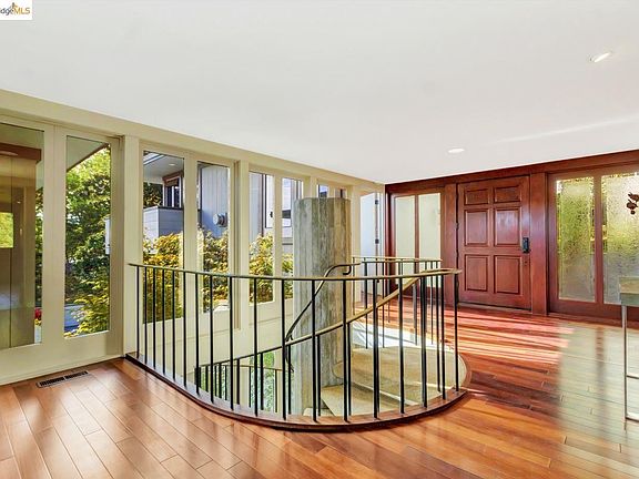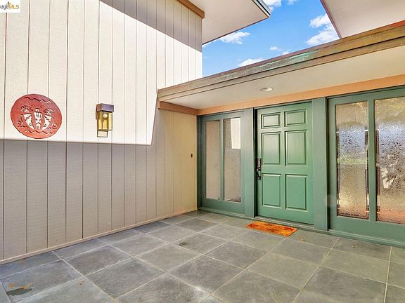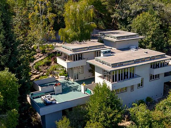Sophisticated, modern, private, light filled, with sweeping panoramic views of Mt. Diablo from almost every room. Designed by local architect Ian Mackinlay. Kitchen with a deck, a master suite, with marble bathroom, walk in closet, family room and freshly painted large deck with built in hot tub. Store your favorite wines in the built in wine closet. Clerestory windows on the upper floors for optimal light. Spacious bonus room with separate entrance for au pair, office, gym, etc. Large dog run, outdoor walkways around the house, plenty of storage, including large utility room underneath the rear of house. Hardwood and new carpet throughout. Only 17 miles from San Francisco.