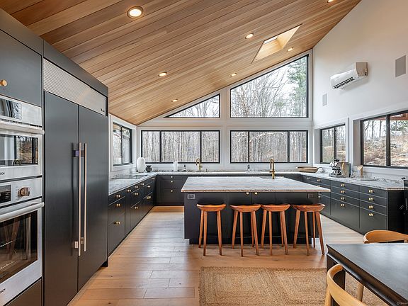 Available for $15,000/mo for 2025/26 school year and $75,000 for Summer 2026. Enjoy Modern Luxury in Connecticut's Countryside. The meticulously renovated 4-bedroom residence seamlessly blends the original mid century architecture with contemporary sophistication. Enter on the main level with 2 bedrooms and 2 full baths, sauna, foyer, powder room and media room with large screen tv and bar. Upstairs you're greeted by soaring ceilings and quality finishes that further establish the home's distinctive character. The great room features a fireplace, tv, dining for 8-10, gourmet kitchen and windows that frame pastoral views of the Litchfield Hills. The Great Room walks out to a covered porch with lounging, dining table and bbq. The primary bedroom with its luxurious 4 piece bath and an additional bedroom/bath complete this level. Brand new designer furnishings create sophisticated living spaces throughout. There are also 2 electric car chargers. 10-12 minutes to the charming village centers of Washington and Woodbury which offer fine dining, organic markets, farmer's markets and many cultural attractions. This extraordinary rental represents Connecticut country living at its most refined.