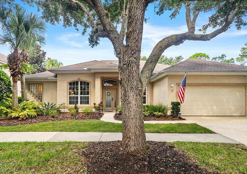 Welcome to this elegant 3-bedroom, 2-bath residence with an office, nestled in the luxurious Grand Haven community of Palm Coast. Enjoy preserve and golf course views from a home designed with comfort and sophistication in mind. The open great room features engineered wood floors, tasteful tile, and abundant natural light from 8-ft stackable sliders and a French door leading to the inviting pool and covered lanai. The remodeled kitchen boasts exotic leather granite countertops, Whirlpool black stainless appliances, and a walk-in pantry with wood shelving. The owner's suite is a sanctuary with a walk-in closet, sliders to the pool, and a spa-style bath with jetted tub and walk-in shower. A split floor plan ensures guest privacy with a secondary bedroom and bath, plus a convenient pool service door. Added peace of mind comes with a new security system and surveillance cameras. This home offers resort-style living in one of Palm Coast's most sought-after communities.