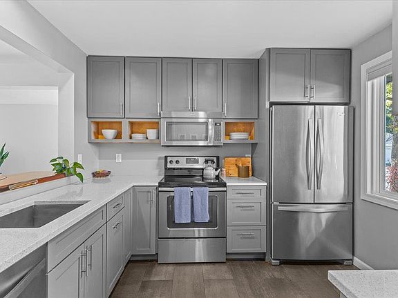 Don't miss out on one of the largest and most unique Overlook East at Spear end units. This 2-bedroom 1,374 square foot townhouse has been totally renovated with top quality materials and features. The spacious living and dining area feels even larger thanks to an open 10x13 alcove. This unit has large, oversized windows many of which have been replaced in the past three years to make it an exceptionally bright home. The kitchen, which has been completely remodeled, boasts new custom cabinets, quartz countertops, and a coffee/appliance bar which adds extra counter space and storage. There is a large solid wood breakfast bar which opens up the kitchen to the rest of the living area. Updated ceramic tile flooring in the kitchen, entry, and both bathrooms. The full bath upgrades include a large new vanity with plenty of storage below, an oversized soaking tub, a glass tile shower surround, sliding glass shower doors, a low flow toilet, and a new light fixture. All interior doors have been replaced with 5-panel solid doors and four new windows have been installed within the past three years. An extra-long detached garage with overhead shelving which provides ample storage. Overlook at Spear offers a pool and tennis court, as well as easy access to I-89, Downtown Burlington, and UVMMC. Szymanski Park is easily accessible just a short way down the bike path, which is just minutes from your front door.