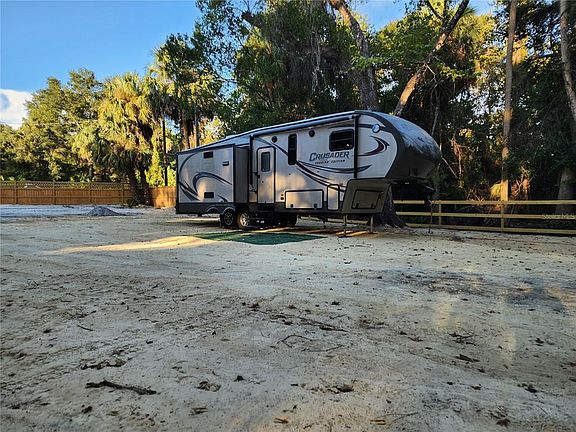 This .43 parcel of property has been beautifully cleared and is ready to build your dream home! This property makes you feel secluded and surrounded by nature, with the convenience of being close to town. Fully fenced property includes a meticulously completed wooden privacy fence on the front and back of the property to seclude you from the roads and is lined with gorgeous solar powered lighting. A double gate opens on the Oak Street side, for convenient and easy pull through on the property. The privacy fence seamlessly transitions into a ranch style fence on both sides of the property, that opens up to the woods, allowing for the natural beauty of the mature trees to shine through, while also providing total privacy from neighboring properties. Black wire meshing encloses the ranch style fence, blending in perfectly to the surrounding woods. All dead trees and dangerous limbs have been removed from the property, while leaving plenty of trees for shade and seclusion. All trees left on the property have been properly trimmed for balance and safety from winds. The property has been methodically graded with 21 loads of fill dirt & lime rock to allow for the proper run-off of rain during storms. A lime rock driveway connects the front and back of the property (Palm Drive and Oak Street) and there is ample lime rock parking in the front, off of Palm Drive. Permits are already on file and approved for RV living on the property. Pre-approved home building plans are also transferrable with the sale. Brand new, never used, septic system was just installed, along with new electrical panels, and water is connected to city water. There is a 100 amp connection, allowing for 2 RV hookups (50/30/20 amp). This property also comes with a 2015 28-foot 5th wheel Crusader RV. In addition, there is a new and freshly painted 20’ storage container on the property. Mailbox is brand new, with lockable feature to keep small packages safe & secure. About the area: Only 5 minutes to the grocery store or gas station. Only 7 minutes to one of several nearby boat ramps or to the freshest seafood market around. The cities of Crystal River and Dunnellon are a short 15-minute drive away with all the store and restaurant choices you need!