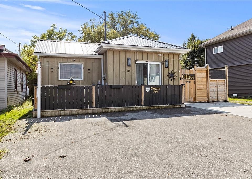 Always wanted to own a little piece of paradise in a quaint & vibrant beach town? Look no further, this cottage style home can be enjoyed all year round or seasonally, whatever you desire or need. This fantastic property has so many great features to appreciate. A great curb appeal with parking fit for 3 cars, completely private fenced in yard and entry way and a sweet fenced in deck off the front to sit out as an extra bonus area of outdoor living. Beyond the private front gate you will enjoy multiple lounge areas including a side door concrete patio which you will also find a trailer clean-out drain for those trailer enthusiasts. A few steps away you will find your first she/he shed that can be used as an (currently) office or workshop or whatever you desire. Step further into the yard and you will find another outdoor patio that leads you to a covered screened in gazebo to enjoy refuge from the sun or your evenings outdoors while being completely covered in. Don't worry this sweet home also has a little space for your guests to sleep while visiting offering an outdoor sleeper bunkie. Let's now step inside the main home that boasts an inviting space open to the kitchen and living area sliding door access to the front porch. A cute bedroom domain and a 3 piece bathroom awaits you. Heating includes a combination of heat/ac pump (2024), gas fireplace, and electric heat in the "office" shed, bunkie and covered gazebo. Also featuring 3 large outdoor electrical units which can be used for tailer, hot tub (30amps), or whatever your needs, most windows on main home, upgraded pipes, outdoor tap featuring hot & cold water, and so much more! Don't miss out on this little piece of paradise located within a quiet neighbourhood within steps to park, baseball diamonds, trail with lakeview, walking distance to well known Port Dover beach, shops, and restaurants, and other amenities.