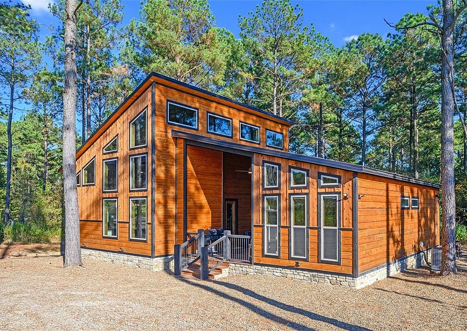Cab'n America cabin is nestled in a secluded, private neighborhood on 1.3 acres in the middle of everything Hochatown has to offer. Our main house offers a master bedroom w/a bathroom ensuite. The loft has 4 twin beds (bunks), TV, and games. Our exclusive floor plan offers two casitas separated by a spacious outdoor breezeway with private full bathrooms. Each casita has its own entrance, coffee station, and king bed. Our outdoor space includes a 70" TV, fireplace, hot tub, fire pit, and two hammocks. For a link to a video walk through, please reach out to the listing agent Kelli Haus.