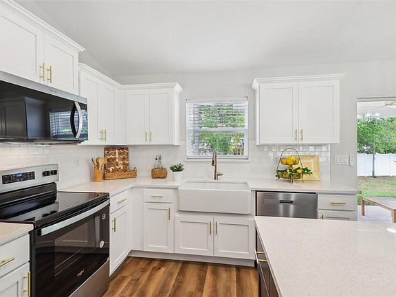Under Construction. Fully Fenced! Seller is offering a $5,000 credit towards buyer's closing costs! Welcome to your private sanctuary in beautiful Ocala, Florida! This stunning new construction home is not just a house; it's a meticulously crafted retreat where modern elegance meets comfortable living, offering a peaceful escape from the everyday hustle. As you approach, you'll be greeted by an elegant, upgraded front door and stylish board and batten Hardie Board siding. A charming 119-square-foot front porch invites you to sit and relax, while the shutters on the right front window add a touch of classic curb appeal. Step inside and feel the easy-flowing, open-concept layout, where luxurious vinyl plank flooring stretches throughout the entire home. The kitchen is a chef’s delight, featuring sleek stainless steel appliances, a chic backsplash with wall tile, and brass plumbing finishes that add a hint of sophisticated warmth. Pendant lights over the island make it the perfect spot for casual meals or a morning coffee. The spacious master bedroom is your private retreat, complete with a tray ceiling and a spa-like en-suite bathroom boasting a beautifully tiled shower. Every detail has been thoughtfully considered for your comfort. All three bedrooms are fitted with ceiling fans, and every window includes 2-inch blinds for instant privacy. Step out back to your private oasis—a 128-square-foot screened-in lanai with its own ceiling fan, offering a serene escape. Beyond that, a new 6-foot vinyl privacy fence encloses your backyard, giving you the perfect space for outdoor gatherings, gardening, or simply unwinding in complete seclusion. This home combines superior craftsmanship with exceptional features, making it the perfect place to start your next chapter in a serene and welcoming community. Don't miss your chance to own this beautiful property and call us today! Some photos are of model homes, some colors and features of actual home may vary.