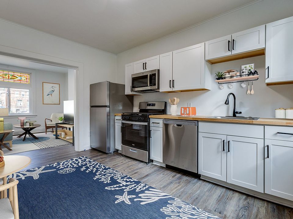 - Exterior features: LED lighting, Near Downtown, New Appliances, New Flooring, New Paint, No Utilities included in rent, Renovated, Stained Glass, Stainless Steel Appliances, Walk In Closet