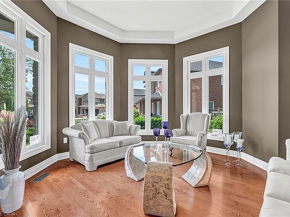 Custom-built home with over 5000 sqft of finished living space, meticulously maintained by original owners. It offers 2 primary bedrooms, as well as a full in law suite, ideal for a multi generational family. Situated on an oversized pie shaped lot, 10 min to Upper James shopping. This stunning property boasts a wide stamped concrete drive w/ parking for 4 vehicles + oversized double car garage, 11 ft in height, w/ 9 foot high garage doors, perfect to accommodate a car lift. Main floor features a dream kitchen with custom cabinetry, quartz countertops, extra large sink & eating area with oversized patio door leading to the backyard oasis. Main floor primary bed w/ walk in closet & 6pc ensuite. Bright & spacious 2 storey family rm w/ natural gas fireplace, separate living & dining room, bed/office, 2 pc bath & main floor laundry off of the garage. The upper level offers a family room, 3 bedrooms, including 2 that offer ensuites & walk in closets. Fully finished basement has a full kitchen with dining area, rec room, bed w/ ensuite privilege to 3pc bath, office, workshop, 2nd laundry rm, + hot tub & hobby room. Gorgeous backyard featuring inground saltwater pool with new heater, stamped concrete surround, Trex decking on patio & in the covered outdoor kitchen area, outdoor speakers & oversized custom shed. 4 season sunroom is the perfect place to relax. Recent updates include pool heater 2025, roof shingles 2020, shed & sun rm shingles 2022, furnace & A/C 2023.This home must be seen! Luxury Certified.