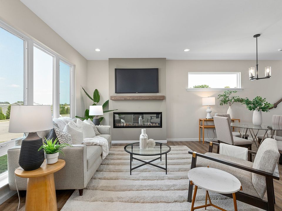 Birdie Hills home buyers may choose from homes in our Townhome Collection or our Cottage Collection. The gorgeous 2-story Fairground is a 3 bedroom, 2.5 bath floor townhome with 1,474 sq. ft. of living space, a 2-car, oversized garage and a basement. The main floor features an open concept kitchen, dining and living room with 9' ceilings and enlarged casement windows for additional natural light. They also include luxury vinyl plank flooring and a powder room on the main floor. The second floor features a large owner's suite with walk-in closet, laundry room, two additional bedrooms and a shared hall bath.