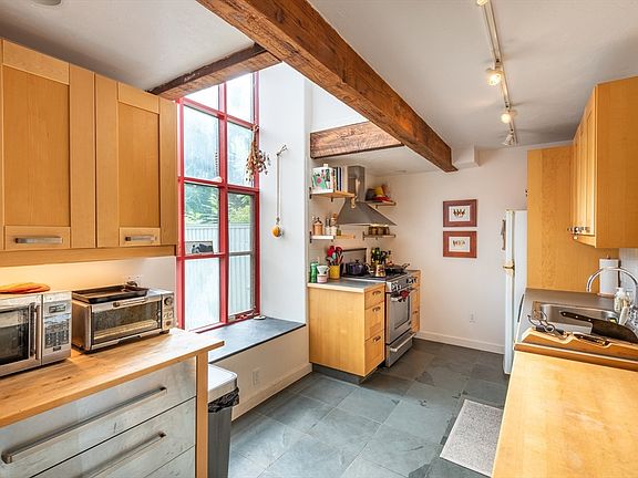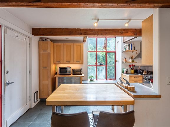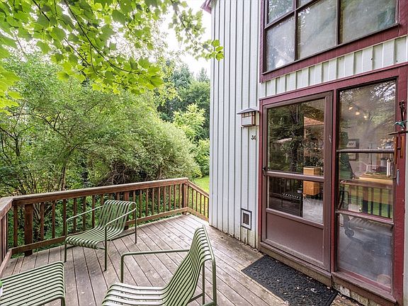 Welcome home to this renovated post & beam end unit in a secluded corner of Ice Pond Woods, convenient to downtown Amherst, area schools, and Hadley shopping. Extensively renovated, you'll find bright finishes bathed in light from generous windows and skylights. The main level offers updated kitchen with tile floor, butcher block counters, and newer gas range. Living and dining room features office nook, bamboo floors, and wood stove. Upstairs the lofted bedroom suite sports wood floors, full bath, and convenient laundry. Garage and additional storage are located directly beneath the unit.