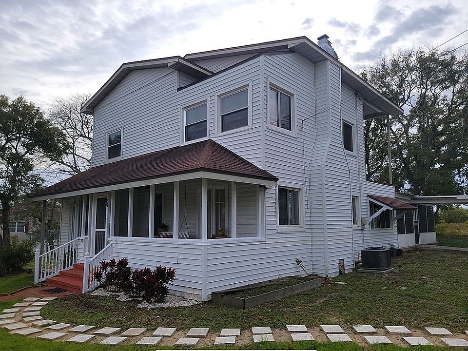 A large screen enclosed porch for entertaining, a charming front porch for relaxing and a covered back porch accessing the laundry room. The oversized carport feels like you've stepped back in time with the charming carriage doors to the workshop and wood siding, this space can also serve as another extended patio or additional living area! The lot is nearly 1/2 acre and is partially fenced. Please call or text for more information. Showings are available with an appointment.