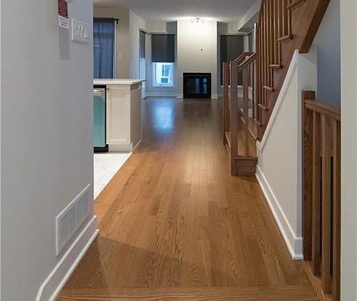 This beautifully maintained Urbandale Discovery model townhome features hardwood flooring throughout the open-concept living and dining areas, with upgraded tile in the entryway and kitchen. The kitchen is equipped with quartz countertops, a breakfast bar, a modern hood fan, and stainless steel appliances. The second level offers a spacious primary bedroom with a 4-piece ensuite, walk-in shower, and walk-in closet. Two additional well-sized bedrooms provide large windows and plenty of natural light. A convenient second-floor laundry room completes the upper level. The finished lower-level rec room offers extra living space, perfect for relaxing or entertaining. Additional features include a garage door opener and installed window curtains. Located close to shopping, parks, schools, restaurants, and public transit. No pets or smoking permitted. Photos are from a previous listing, and one of them is virtually staged.