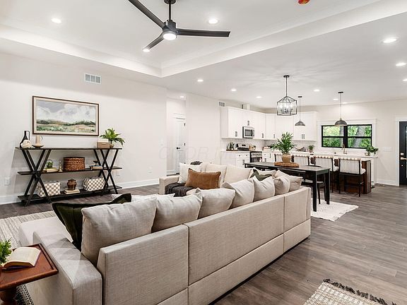 Presenting this beautiful new spec home by Runyon Construction, boasting 3 spacious bedrooms and 2 full bathrooms. Appreciate the sleek open concept design, adorned with white quartz countertops, stainless steel appliances and custom cabinets that invite elegance and functionality. The large master bedroom features a stylish walk-in closet and an en-suite bath to offer a luxurious retreat. Attached is a finished 2-car garage for convenient parking. The full basement, with its 8ft ceilings, offers potential for additional living space. Relax outdoors on the back porch under the shade and privacy offered by mature trees. This is an exquisite home reserved for those seeking modern comfort.
