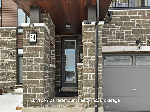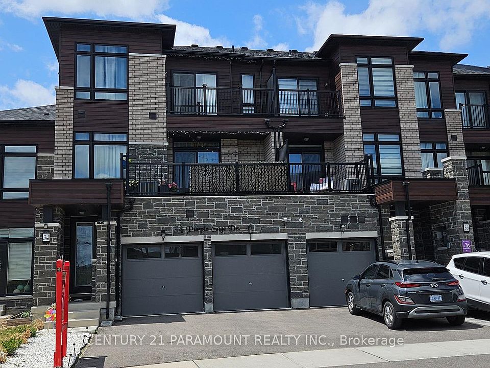 Absolutely Stunning, Spacious 2.5-year-new end unit freehold luxury townhouse offering 2,475 sq ft of finished living space with rare double garage and dual frontage. This bright and modern home features 9' smooth ceilings on the ground and second floors, a versatile main floor with recreation room, laundry, powder room, and an open-concept second level with a spacious great room with fireplace, large windows, and walk-out to balcony. The chefs kitchen boasts walnut cabinetry, quartz countertops, custom backsplash, walk-in pantry, gas cooktop, and premium built-in stainless steel appliances. Upstairs are 3 spacious bedrooms including a sun-filled primary suite with walk-in closet and ensuite bath, and a second bedroom with balcony access. Additional features include EV charger rough-in, 200 Amp upgraded panel, and two Chamberlain garage door openersall in a fantastic, sought-after location! Come & Check Out This Freehold Townhouse before its gone !!!!