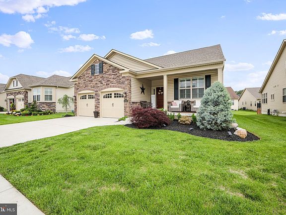 Nestled in the highly sought-after Montebello community, 34 Ravenna Dr, West Berlin is a stunning residence built by award-winning NJ home builder JS Hovnanian, known for their exquisite European-style exteriors. As the last home constructed in this desirable neighborhood in 2021, it offers the unique advantage of feeling like a brand-new home with exceptional curb appeal. Step into the inviting foyer, where rich, warm hardwood floors, elegant wainscoting, and sophisticated crown molding immediately set the tone for a refined and modern living experience. The open and spacious floor plan ensures seamless flow throughout, complemented by a tasteful neutral paint palette and ample coat closet storage. The home boasts two well-appointed bedrooms and two full bathrooms across 1,823 sqft of living space, plus a partially finished attic for extra storage space which can easily be converted to additional living space. The first bedroom features stylish custom shutters, while the expansive primary suite is a true retreat, complete with a walk-in closet, custom darkening shades, and ceiling fan. The luxurious primary bathroom impresses with a large stand-up shower with bench and five shower heads, dual sinks, a makeup counter, extra storage and linen closet. Designed for effortless entertaining, the separate dining room showcases elegant wainscoting and an upgraded light fixture, opening to the expansive family room and eat-in kitchen. The family room is a showstopper, featuring a floor-to-ceiling stone gas fireplace with mantel, adding warmth and charm to the space. The gourmet kitchen boasts beautiful espresso cabinetry, a stunning backsplash, underlit cabinets, and gorgeous granite countertops—all complemented by high-end stainless-steel appliances, including a built-in microwave and oven. The kitchen also highlights an upgraded LG Thin Q side-by-side refrigerator with Craft Ice™ and dishwasher. A unique bonus space off the kitchen is currently utilized as a coffee bar and bar station but offers endless possibilities for customization. The spacious laundry room with a washer and dryer leads to a convenient 4-ft crawl space for extra storage. Open the sliding doors to a grand Trex deck—built in 2023 with a lifetime warranty transferable to the new owner. This one-of-a-kind deck, possibly the largest in the neighborhood, features a built-in gazebo, integrated lighting, and a privacy gate, making it the perfect spot for year-round enjoyment and relaxation. Thoughtfully placed trees surround the deck for extra privacy and ambiance. Additional highlights include custom window treatments, recessed lighting, a surround sound system, and an in-ground sprinkler system. Residents also have access to the updated 14,000 square-foot Montebello Club and Spa where you will find a fitness center, indoor pool, hot tub, grand salon, lounge, billiard room, Cloisters Lounge, ballroom, business center with computers and so much more. Relax outside by the beautiful beach- entry outdoor pool and hot tub with covered veranda. Play a game of bocce ball, horseshoe or unwind in the gazebo. This home is just minutes away from the highly rated Virtua hospital, fine shops, dining, entertainment, Berlin Park, golf courses, post office and banks. Easy access to Route 73, the highway, Jersey Shore, Philadelphia and NYC. Say goodbye to the snow shovel and lawn mower and say hello to resort at-home living. Book your appointment today!!