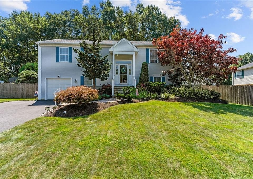 BEST OFFERS DUE by Tuesday, 8/13/2024 at 10AM. Fall in love with this gorgeous 3-bed, 2-full bath home in desirable Hunters Crossing! Curb appeal galore w/ its beautifully landscaped yard and flagstone/bluestone walkway leading to a covered portico entry. Inside find gleaming hardwood floors, a freshly painted interior, renovated kitchen w/ granite counters & kitchen island — plus all new appliances in 2023! Open-concept living room & dining area feature vaulted ceilings & a slider out to the large deck. Both full bathrooms were updated two years ago as well as lighting throughout. The Primary Bedroom features vaulted ceiling, hardwoods, walk-in closet & ensuite full bath. Two additional bedrooms on main floor. Walk-out lower level offers a giant family/bonus room w/gas fireplace & large storage closet. So many possibilities for this space! Large room with laundry area, utilities & more storage leads to garage. The private, park-like fully fenced backyard has a large deck, patio w/new furniture including a propane fireplace, gorgeous landscaping w/ mature trees, bushes & garden beds and full irrigation system front and back. Additional features: Efficient gas heat w/ updated furnace, 1-car garage, oversized double-wide driveway, newer roof, newer AC unit & new water heater. Enjoy all that Hunters Crossing has to offer — sidewalks throughout, an exceptional community & a neighborhood park w/ basketball, tennis courts & a new playground breaking ground this Fall.