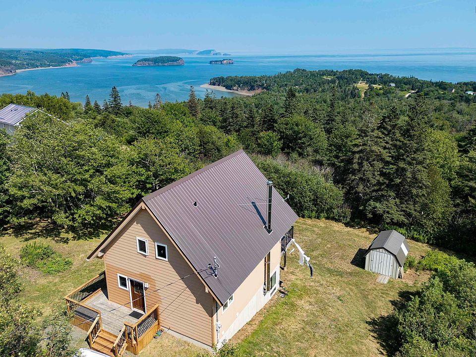 Perched gracefully on a gentle hilltop, this beautifully crafted Viceroy home offers commanding views of Two Islands and the Bay of Fundy's Minas Basin, where the ever-changing hues of sky and sea create a living work of art. Thoughtfully designed to capture the natural beauty that surrounds it, the home features expansive windows and an open-concept layout that flood the interior with light and invite the outdoors in. Every detail reflects a commitment to quality and comfort. The front door is of European design. The kitchen features custom maple cabinets, and is open to the living and dining room spaces, with a gorgeous wrap-around deck and views beyond the trees to the ocean! There is a bedroom on the main floor, two bedrooms on the second floor and a fourth on the lower level. The lower level has a walk out to the backyard. The primary suite on the second floor has a private balcony with breathtaking views of the Two Islands! There are two ETS heating units, plus a wood-stove and 200 amp service. Outside, the grounds offer both privacy and a natural connection to the surrounding environment. Whether you're enjoying your morning coffee with the sound of waves in the distance or hosting friends for an evening gathering, this home provides a rare blend of peaceful seclusion and refined living. A true coastal haven, it promises timeless elegance and unmatched views in a setting that feels both remote and connected.
