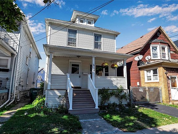 Built in 1910, this 1,248 square foot two-story home showcases quality craftsmanship with solid bones perfect for today's buyer. The property features a newer tear-off roof, low-maintenance vinyl siding, Trek porch and steps approximately 10 years old, and a blacktop driveway with concrete apron. The 30' x 110' lot includes an additional storage shed in the fully fenced backyard. Inside, you'll find 4 bedrooms ideal for growing families, original hardwood floors, tall ceilings on the first floor creating an open and airy feel, and an original wood banister showcasing historic craftsmanship. The large kitchen includes a pantry off to the side, and the home features a functional floor plan with an enclosed back staircase to the full cinderblock and concrete basement. This lovingly maintained home offers excellent bones for buyers looking to add their personal touch. With cosmetically updated homes in this size and location selling between $240,000-$270,000, this represents an outstanding opportunity to build equity while creating your dream home in one of Buffalo's most affordable neighborhoods. Enjoy the lifestyle benefits of walking to Riverside Park for recreation and community events, strolling to the Niagara River, and experiencing true front porch living with actual water views in an established neighborhood with strong community ties. Don't miss this rare opportunity to own a piece of Riverside history in a location that truly can't be beaten. Join us for an open house on Saturday, October 11th from 1:00-3:00 PM and Sunday, October 12th from 11:00 AM-1:00 PM to see all this home has to offer. All offers are due by Thursday, October 16th at 5:00 PM.