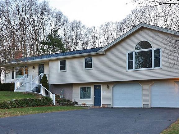 Expanded ranch features 3 BRs, 2 Baths, recently remodeled kitchen with granite, stainless steel, open to LR/DR; Trex deck; huge 20x20 family room over 2-car attached garage; lower level walkout office and rec room with plenty of light and lots of storage adds over 800 S.F. heated space not included in listed square footage. New 1500 gallon septic system could accommodate 4 BRs; new basement oil tank; replacement windows; new garage doors and openers. Main floor has hardwood floors, tile, new carpet in family room and stairs, skylights, fresh neutral paint. Owner agent. Great neighborhood in Tolland, close to everything, move right in