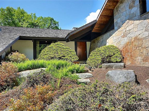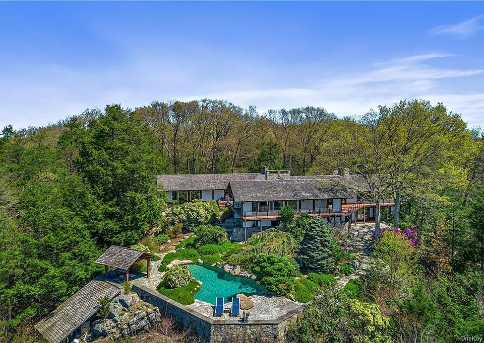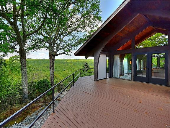 Two houses for the price of one !!! What a view !!! Overlooking the Mianus Gorge and the Stamford Water company reservoir, all that you can see are clouds, protected land and hawks !!!! Extraordinary contemporary with exceptional privacy on three levels with large decks. Amazing vaulted ceilings that look like the nave of a wooden ship, with glass doors that just invite the outside in. Fascinating rock steps and gardens with a free form pool that makes you feel as if you are one with the world. And, the listing INCLUDES a full two bedroom second house (2388 square feet), perfect for guests or a caretaker. Both houses were built by the family of the current owners. Never before have you felt such peace and privacy.
