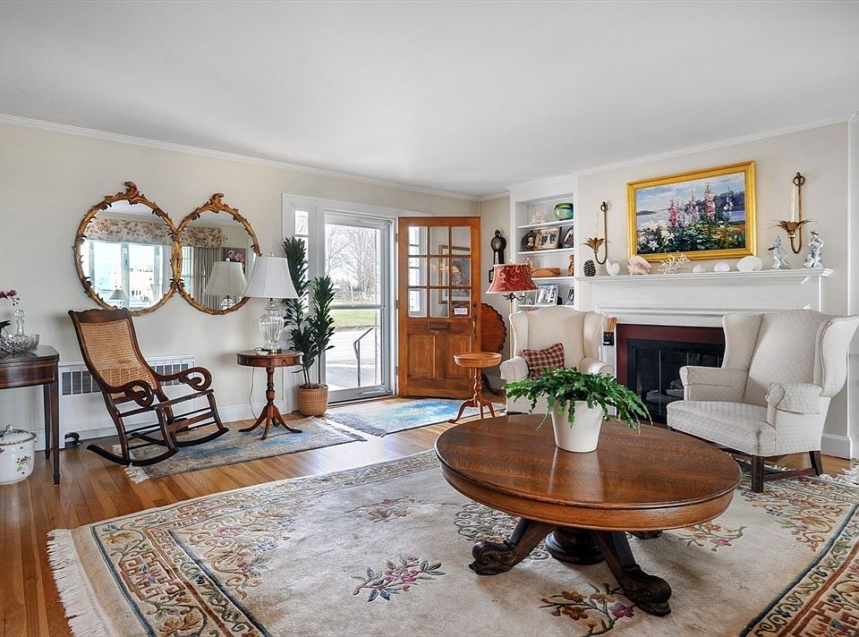 Discover a truly exceptional gem! This captivating ranch, gracefully situated on a corner lot, features hardwood floors throughout. The living room exudes warmth with a wood-burning fireplace and built-in cabinetry, seamlessly connecting to the dining area. Convenience meets style with a one-car garage, gas heat, and central A/C. Step into tranquility within the three-season enclosed porch, while the beach beckons with a leisurely walk. No flood insurance required enhances the allure of this coastal haven, complemented by ample storage in numerous closets and an unfinished basement. This special home, boasting easy access in and out of town, is a must-see. Move in and savor the best of Hull, enjoying quick strolls to local restaurants, the boardwalk, marina, and the beach.