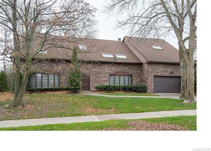 Custom contemporary brick home on one of Buffalo's most premiere settings across from Delaware Park. Steps to AK, Hoyt Lake, Marcy Casino, and walkable Elmwood Ave. Dramatic 2 story foyer, imported Mexican tile through 1st flr. Kitchen boasts WBFP, copper counter tops, grotto cooking area. Gracious formal LR&DR. Master suite offers soaring ceilings, wet bar, fireplace, patio overlooking yard, sauna, sunken tub, and large tiled shower. 2nd master suite has large bathroom w/sunken tub. 2 other BRs have Jack & Jill bath. Many skylights. Flagstone terrace w/awning overlooks large & private yard.