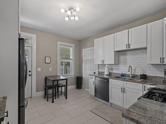 Inside, original character meets modern updates with hardwood floors and exposed brick with ample living space. The kitchen is a showstopper with granite countertops, stainless steel appliances, and generous cabinet space. A first-floor laundry and full bath add convenience, while upstairs you'll find three comfortable bedrooms and another full bath.