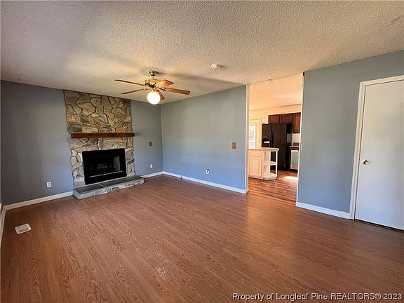 Large kitchen and lots of cabinets in this 3 bedroom 2 bath home. Yard is very large at almost an acre and private. Close to base. New roof, new a/c and a beautiful new deck! Great location