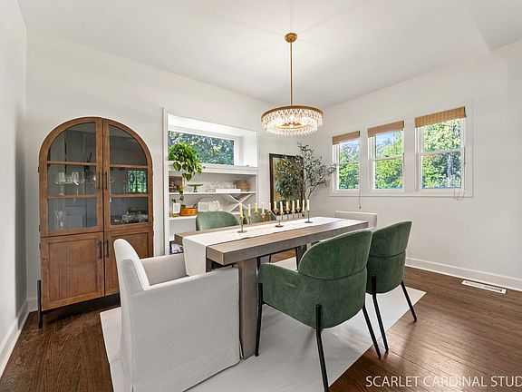 Stately brick fireplaceSoaring ceilingsGleaming hardwood floorsExquisite backsplashExpansive quartz countertopsCustom built-insTile flooring