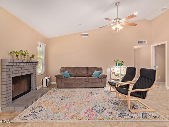 This home, located near 202 Santan, 101, & I10, has been meticulously maintained by its owners over the years. Their dedication is evident as soon as you arrive & admire the array of cacti and the well-kept outdoor Zen garden. When you enter through the upgraded designer screen door, you'll find a tiled great room with a cozy wood-burning fireplace and a kitchen area. The property boasts new windows, a new roof, new appliances, new HVAC, and more. The primary bathroom has been renovated with a beautiful clawfoot tub and tiled surround. All bedrooms feature carpeting and offer space for guests or a home office. The 2-car garage allows for storage with built in cabinets, new water heater. Turnkey, move in read
