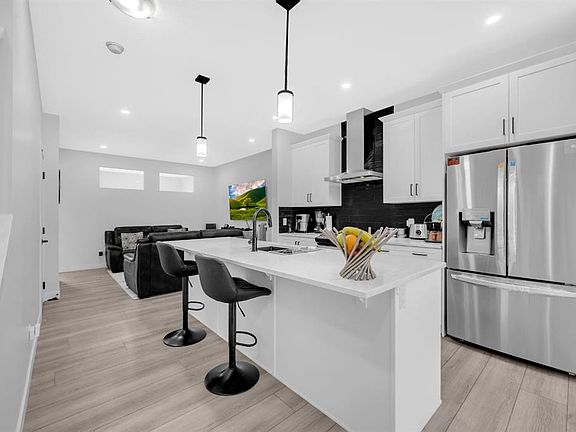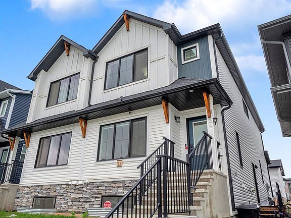 Welcome to this stunning semi-detached home with a LEGAL BASEMENT SUITE in the highly sought-after, family-friendly community of Sage Hill. Built in 2023, this modern 2-storey property offers over 1,800 sq. ft. of well-planned living space, thoughtfully designed for both comfort and versatility. With 5 bedrooms, 3.5 bathrooms, and a double detached garage, this home is perfect for families or those looking for an excellent income-generating opportunity. The main floor greets you with a spacious foyer and a versatile office space, leading into an open-concept living area filled with natural light. The chef-inspired kitchen features granite countertops, an oversized island, built-in refrigerator, gas cooktop, wall oven, and sleek modern cabinetry. The dining area flows seamlessly into the backyard, making it ideal for gatherings and entertaining. With 9-ft ceilings on both the main and upper levels, 8-ft doors, and oversized windows, the home feels bright, open, and inviting. Upstairs, discover 3 well-sized bedrooms, including a luxurious primary suite with a tray ceiling, 5-piece ensuite with soaker tub and shower, double vanity, and a walk-in closet. A central loft/bonus room and convenient upper-floor laundry add to the functionality of the layout. The fully developed LEGAL BASEMENT SUITE, complete with its own private entrance, offers 2 bedrooms, a full 4-piece bathroom, a well-equipped kitchen, a cozy living/game area, and its own laundry — perfect for multi-generational living or as a mortgage helper. Notable upgrades include motorized blinds, quartz/granite countertops throughout, laminate and tile flooring, built-in features, double vanities, multiple walk-in closets, and a concrete-paved driveway. Situated on a 2,529 sq. ft. lot in one of NW Calgary’s fastest-growing neighborhoods, this home is close to parks, pathways, schools, shopping, and transit. Offering a rare blend of modern design, functionality, and legal suite potential, this property is truly move-in ready and a must-see.