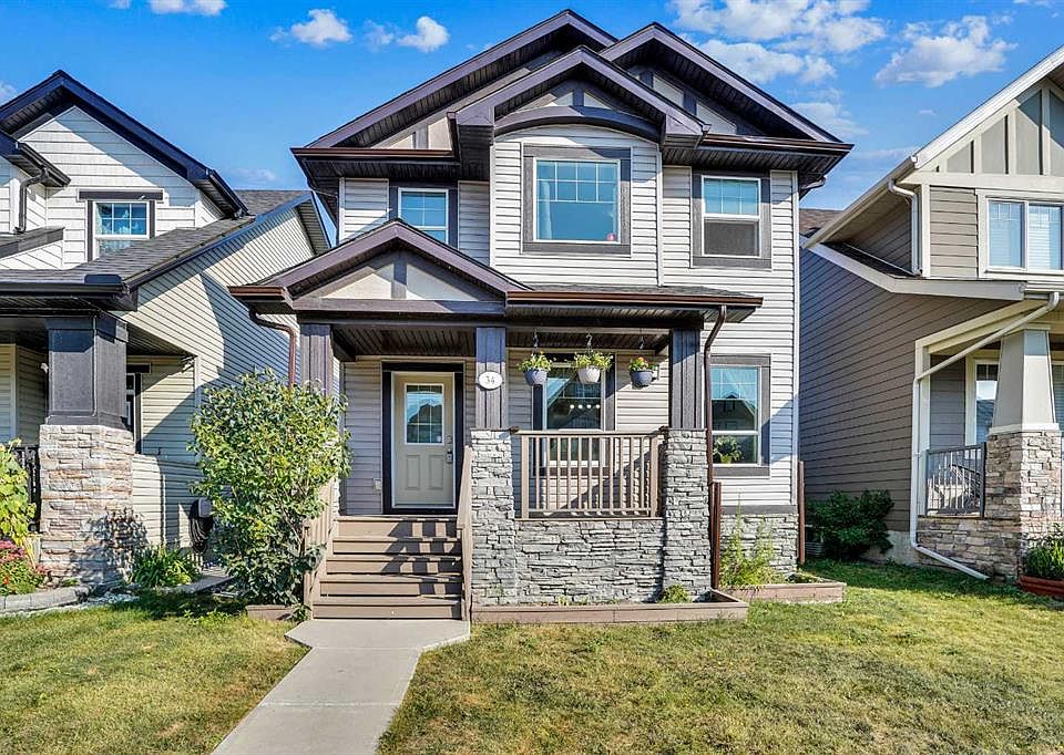 .DETACHED SINGLE-FAMILY HOME WITH DOUBLE GARAGE UNDER 545K! This well-maintained 2-storey home is situated on a CONVENTIONAL LOT and offers a functional layout with key features for comfortable everyday living. The main floor features a sun-filled living room, designed with large windows that bring in natural light throughout the day, complemented by durable hardwood flooring. The kitchen is both practical and well-kept, offering a pantry for extra storage, ample cabinetry, and a dining area highlighted by a large window overlooking the backyard. A quality gas stove adds to its functionality. Completing this level is a convenient 2-piece bathroom. Upstairs, you’ll find a generously sized primary bedroom with a walk-in closet and a private 4-piece ensuite. The upper level also includes two additional good sized bedrooms, along with a 4-piece bathroom to complete the space. The basement is unfinished, providing a blank canvas for future development, with the option to conveniently add a side entrance to enhance its potential. The backyard is designed for both function and enjoyment, featuring a good-sized deck that’s perfect for outdoor entertaining, along with a double detached garage accessed from a paved back alley, providing secure parking and storage, as well as extra room for activities. This home offers quick access to Stoney Trail, Deerfoot Trail, the airport, CrossIron Mills, and a growing number of shops and amenities nearby. Whether you’re a first-time buyer or a young family, this property delivers comfort, convenience, and value in one complete package.