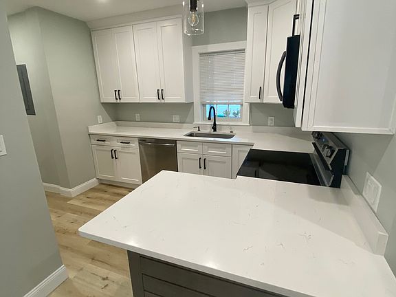 Welcome home to this newly renovated 1 bed,1 bath unit. Residing on the first floor of the home, this unit feels more like a home than an apartment. The new kitchen has white shaker cabinets, quartz countertops and stainless appliances. Bedroom has decorative original fireplace and many of the original details have been preserved. Enclosed porch can be used as home office, large mudroom or workout space. In unit laundry included. Only a short distance from Lake Quannapowitt, the Common and downtown Wakefield. Off street parking is included in the rent. One garage space is available for an additional fee if desired. Pets considered, while restrictions apply. Available January 1, 2026. Video tour available upon request. First and last month's rent due upon lease signing. Utilities are separate and paid for by tenant.
