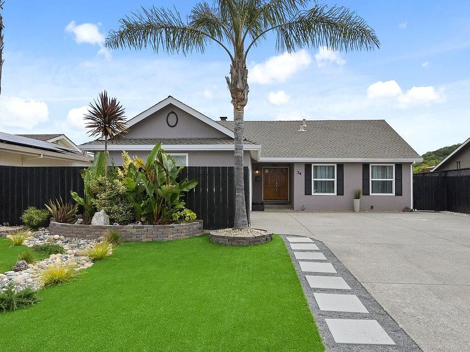 You'll be immediately impressed with this gorgeous home the moment you see it. Made even more special with wonderful custom improvements. Certain walls have been eliminated to create a fantastic open floor plan on the main level with terrific indoor/outdoor flow. Speaking of outdoors, this backyard is the ultimate environment for fun and relaxation, with its incredible outdoor pavilion, tiki bar and covered built-in BBQ - - This no maintenance yard is ready to party! The large redone kitchen features granite counters, stainless steel appliances and a spacious breakfast bar. There's redone bathrooms, beautiful floors, and new carpeting throughout. Upstairs you'll find a huge 4th bedroom, or family room, and a bonus room as well. Fantastic and ultra convenient location just a couple blocks to great schools, San Marin Plaza, Harvest Market and miles of hiking and mountain biking trails on the lovely Mt Burdell Open Space Preserve. An amazing lifestyle to be enjoyed here at 34 San Ramon Way!