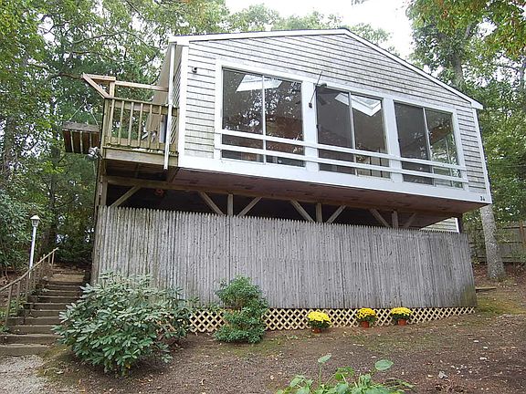 This delightful 3-bedroom year-round, renovated cottage retreat awaits its new owner. Perched in the trees overlooking Santuit Pond, this home is in the very private Briants Neck enclave where sales of homes are rare. Besides the charm of its natural setting, the home offers a completely remodeled interior: new kitchen, bathroom, refinished floors, all new plumbing, a new energy efficient furnace, attic and basement insulation, new mini-split a/c in sunroom, and newer roof and water heater. The heated sunroom has beautiful wall to wall water views. All these features in an idyllic, tranquil setting, while still conveniently located for shopping, etc offer a true escape, a year-round getaway. Title V passed, report on file.