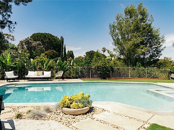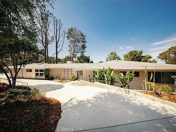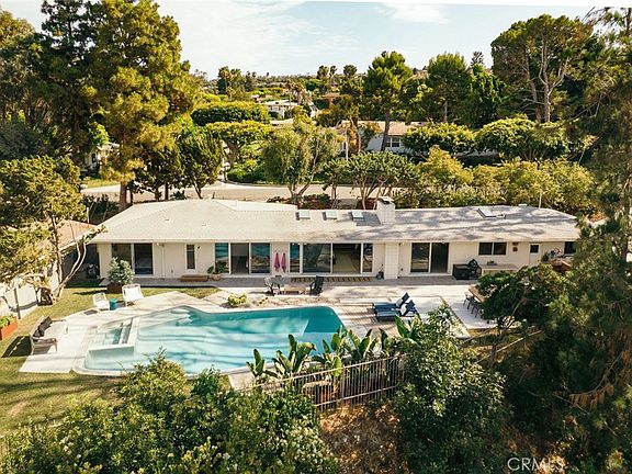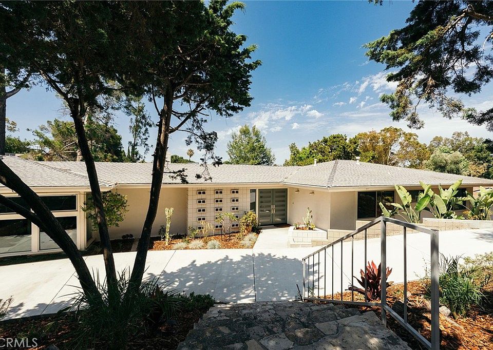 Welcome to 34 Shady Vista—a beautifully reimagined one-level, mid-century modern ranch-style home nestled on a sprawling 30,116 SF lot in the heart of Rolling Hills Estates. Originally designed by acclaimed architect Henry J. Friel, AIA, this 4-bedroom, 3-bathroom residence seamlessly blends timeless design with thoughtful modern updates, offering 2,201 square feet of comfortable and refined living. Situated on a peaceful cul-de-sac with captivating canyon and city light views, this home has been meticulously upgraded to preserve its architectural integrity while enhancing everyday living. Step inside to discover refinished hardwood flooring, brand-new custom sliding glass doors and windows that flood the space with natural light, and a completely remodeled kitchen featuring custom cabinetry, Thermador appliances, new flooring, designer lighting, and Rejuvenation hardware. The family room is highlighted by new skylights and this bright room overlooks the private backyard. The backyard is an entertainer’s dream: a fully renovated pool with new hardscape, landscaping, outdoor shower, plaster, baja shelf, and in-ground spa. All of these amenities and striking views of Mt Baldy and the San Gabriel mountains. This is California living at its finest—architecturally significant, masterfully upgraded, and perfectly located.