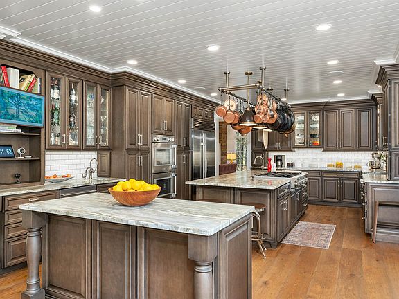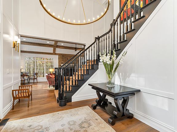 The most uniquely desirable offering available in Amherst. Carefully curated and maintained recent renovation combines premium finishes and the look of a new build with a mature neighborhood, established plantings and three outdoor living spaces. Almost 10 acres with over 500’ of frontage offers complete privacy from the street, direct access to the Souhegan River and a short walk to AMS and Souhegan High. The first floor features custom millwork, paneled walls, v-groove ceilings and hard-wax European oak flooring in every room. Massive kitchen designed for a crowd cooking and cooking for a crowd with an 8-position Blue Star stovetop, Thermador double oven, Sub-Zero refrigerator, three sinks, two islands and a custom-made pot rack focal point. Adjoining oversized dining space with stone fireplace seats a big, fun group. The family room on the opposite side offers a cozy stone fireplace and a panoramic woodland view. Upstairs primary with sitting room and en suite bath with ThermaSol steam shower, heated foor, and heated soaking tub. Three additional bedrooms with updated attached baths. Home theater, gym and workshop in the basement. Little details such as premium plumbing and lighting fixtures, whole-house humidification and scent, Leviton digital light controls and whole-house sound are examples of the current owners’ care and attention to detail. Three attached garage spaces with industrial flooring plus a detached storage building large enough for two cars.