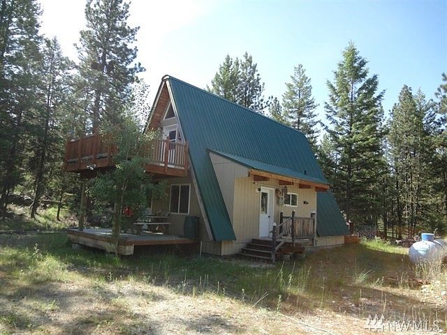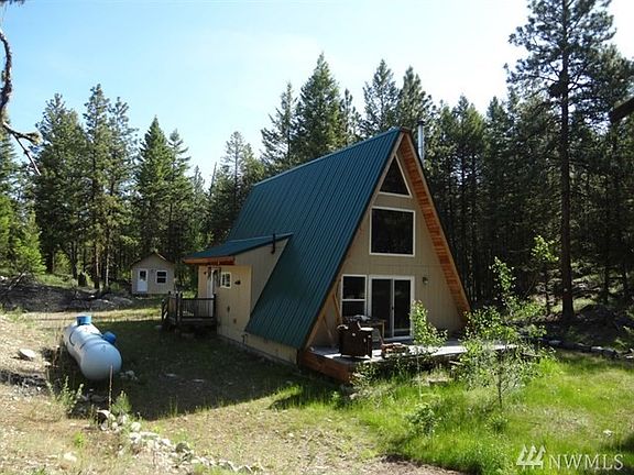 A really nice A Frame style cabin on 4.65 wooded acres. 720 sq ft, 2 plus bedrooms (1 down, 1 plus up). Nice decks, full bath and kitchen. Also 278 sq ft cabin, well built, unfinished inside. Drilled well, permitted 4 bedroom septic installed, generator for power, wired for 220, on demand propane water heater, propane fridge, propane and electric lights, telephone, washer and dryer. Quality construction, well insulated, trex decking. Nice forested setting, very quiet and private, good access.