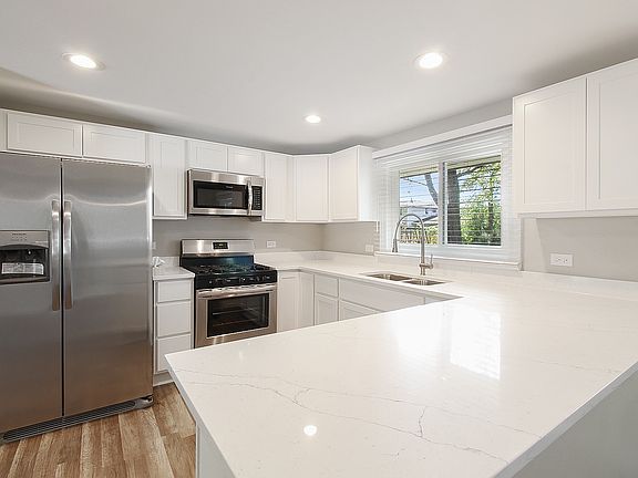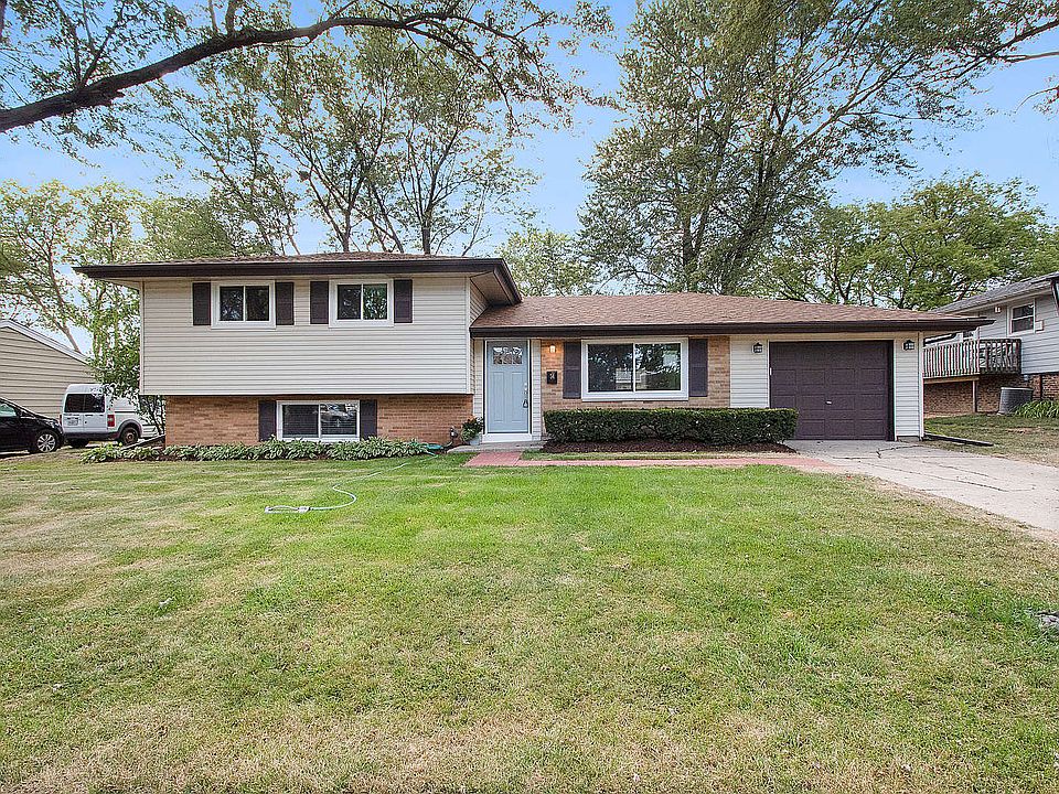 Great curb appeals and so much more in this brick/vinyl split level, three bedroom, 1.5 bath home that is literally NEW FROM THE STUDS UP. Once inside you'll be amazed at all the room on your main level featuring large living room, connected dining room and a chef inspired kitchen. Featuring white maple shaker soft closes cabinets, quartz counter tops, stainless appliances and split stainless sink that looks to your large yard and outdoor deck.Head upstairs to three generous size bedrooms and new custom full bath. This level is complete with new carpet and window treatments. Lower level is highlighted with large family room with sun lit window, storage closets and entertainment nook. Down the hall you'll find new powder room, expansive laundry room and updated furnace and newer hot water heater. All new windows, millwork, flooring, insulation, lighting and much more. Exterior is enhanced with newer roof, oversized deck, fenced yard and mature oak trees. Roof is only six years old! For added convenience, attached one car garage protects you from the elements. Welcome home to Schaumburg!