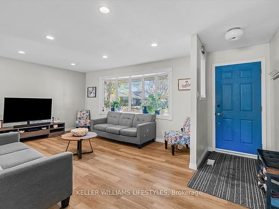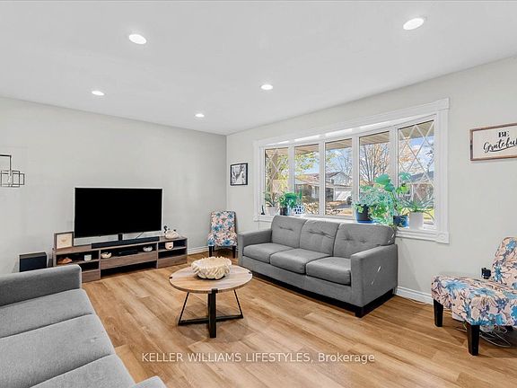 Opportunities like this dont come often. This stunning four-level side split has been beautifully updated and delivers everything, from an open-concept layout filled with natural light to a private backyard retreat designed for entertaining. The heart of the home is the updated kitchen with solid oak cabinetry, modern finishes, and a statement island, while patio doors connect seamlessly to stamped concrete patios and a fully fenced yard. Upstairs, three spacious bedrooms and a sleek four-piece bath provide comfort and style, while the lower levels offer incredible versatility with a second living room, walkout access, a two-piece bath, and a generous primary suite with plenty of storage. An additional level adds even more space for a home office, or playroom, the options are endless.What truly sets this property apart is the rare drive-through double-car garage with a triple-wide driveway, giving you unmatched parking and storage options in this neighbourhood. Set on a landscaped corner lot with a welcoming covered porch and surrounded by schools, shopping, and quick highway access, this move-in ready home is a rare chance to secure not just a property, but a lifestyle.