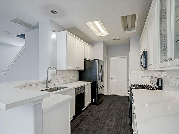 Rare opportunity to own a beautifully updated townhome brimming with natural light on a corner lot that is move-in ready! Updated with remarkable finishes including amazing white quartz countertops, abundant custom cabinetry, stainless-steel appliances, & beautiful wood floors, this fine home is a gem! Amazing kitchen offers gas range cooktop, walk-in pantry, & breakfast bar. Kitchen seamlessly flows into the dining area and living room with a cozy fireplace that delivers a warm and inviting ambiance. Oversized master suite has a large walk-in closet, dual sinks, & garden tub with separate shower. Two sizable secondary bedrooms up are split from the master for maximum privacy with a full bath, spacious closets, and an additional flex space. Backyard is fully paved stone for low maintenance and great for entertaining guests. Exemplary Woodlands schools! HOA maintains the exterior of the building. New water heater, AC is 3 yrs old and has transferable warranty. Applicanes included!