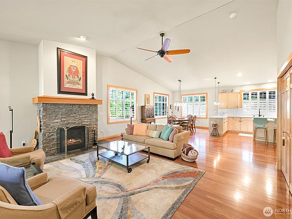 This impeccably maintained, 1-owner 3bed/2.5bath Craftsman-style gem boasts rich hardwood floors, soaring vaulted ceilings, & a chef’s kitchen designed for both everyday function & elevated entertaining. The tree-lined deck is your private outdoor retreat. The entire upstairs is devoted to the primary suite, featuring a cozy fireplace, spacious walk-in closet, & a spa-like jetted tub. The downstairs offers privacy & MIL potential with 2 additional bedrooms/1 bath and a versatile rec room complete with a wet bar & private entrance. Close to Lake Whatcom. Enjoy resort-style amenities including pools, a marina, golf course, fitness center, trails and scenic parks. A rare opportunity to live in style, comfort, and connection with nature.