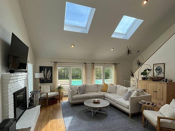 Experience summer living in this immaculate contemporary home located south of the highway in Westhampton. This stylish 3-bedroom, 2-bathroom residence, with an additional den/home office, offers a perfect blend of comfort and modern elegance. The home boasts an updated kitchen with high-end finishes, ensuring a delightful cooking experience, while the two recently renovated bathrooms add a touch of luxury. The primary bedroom boasts an ensuite bath that is a true retreat, featuring a deluxe rain head and steam shower for a spa-like experience in the comfort of your own home. Step outside to a spacious deck, ideal for relaxing or entertaining. Enjoy the hot tub and solar-heated pool, complemented by the convenience of an outdoor shower, perfect for rinsing off after a swim. The pristine yard is beautifully landscaped for privacy and the low-traffic location ensures peace and quiet, while still being conveniently close to Westhampton Beach shops, restaurants, and beaches. This home offers the perfect setting for enjoying summer in style, combining modern amenities with a prime location. Whether you're lounging by the pool, entertaining guests on the deck, or exploring the nearby attractions and beaches, this contemporary gem has everything you need for a perfect summer retreat. Don't miss this opportunity to embrace the quintessential Westhampton summer lifestyle!