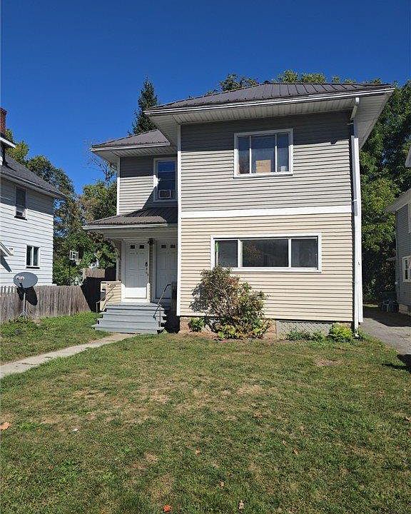 Live just over a mile from Strong Memorial Hospital and the University of Rochester! 34 Terrace Park puts you close to College Town, Highland Park, the South Wedge, and downtown. This 2 bedroom, 1 bath apartment gives you 1,200 sq ft of space, including dining room, family room, and bonus room (perfect for an office, hobby space, or extra lounge). The kitchen is brand new from top to bottom: floors, cabinets, appliances, and countertops (installed 10/9). Never used and waiting for its first pizza night. New ceiling fans and laminate floors. You'll also have basement laundry hookups, off-street parking, and water/garbage/sewer included in rent. One month plus security deposit required for lease signing. Minimum 650 credit score. Pet restrictions.